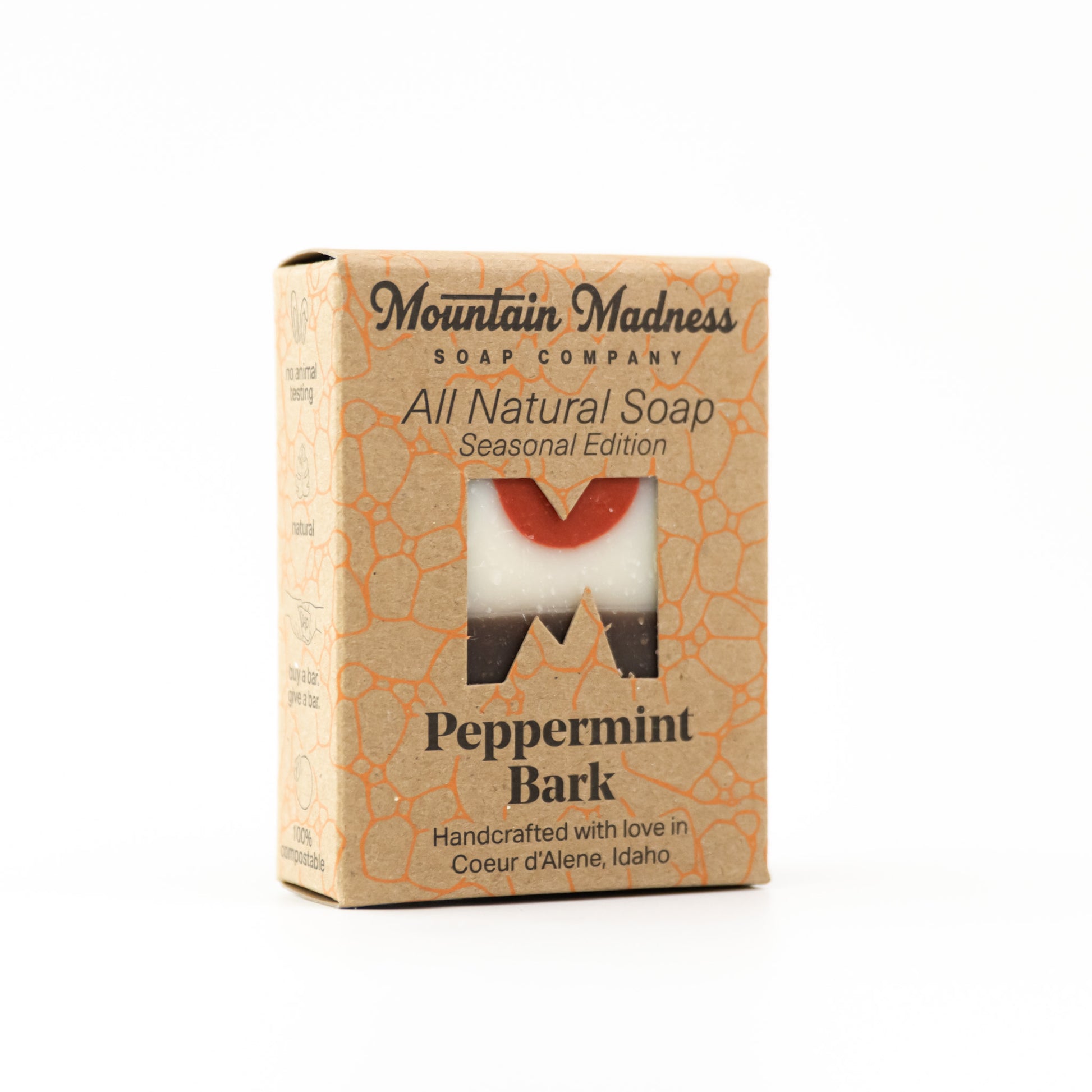 Rich dark chocolate and refreshing peppermint essential oil come together in this festive holiday classic. Our Peppermint Bark Soap captures the indulgent scent of the season; cool, sweet, and perfectly balanced for a bar that’s as delightful as your favorite winter treat.